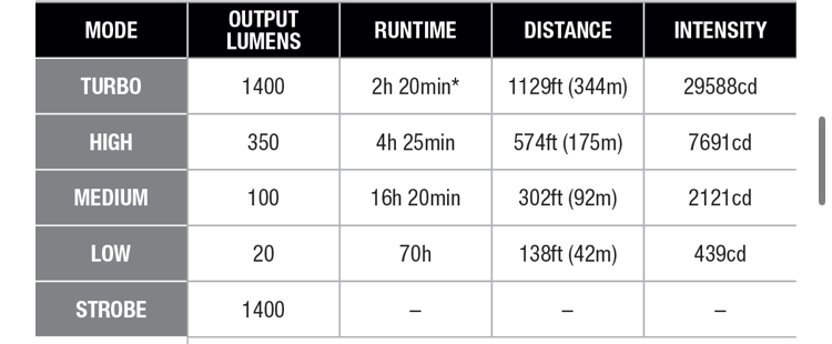 - Max Output: 1400 lumens