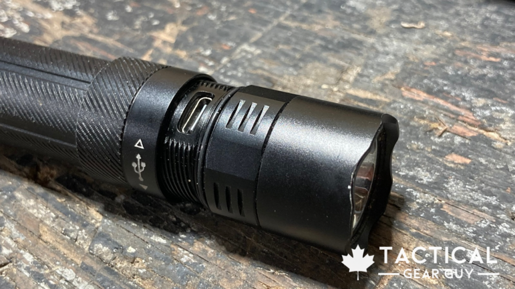 The Fenix PD32R is a very well built tactical flashlight. Everything about it has been done well. It has a decent weight to it which tells you that its a solid flashlight. The machining is awesome, no sharp edges, and the threading to access the USB-C port is perfect.