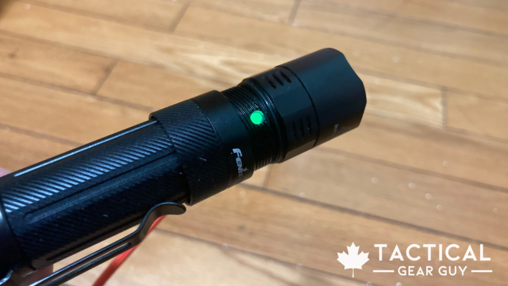 Next to the USB-C charging port is the charge indicator. It also acts as the battery life indicator as soon as you turn on the flashlight.