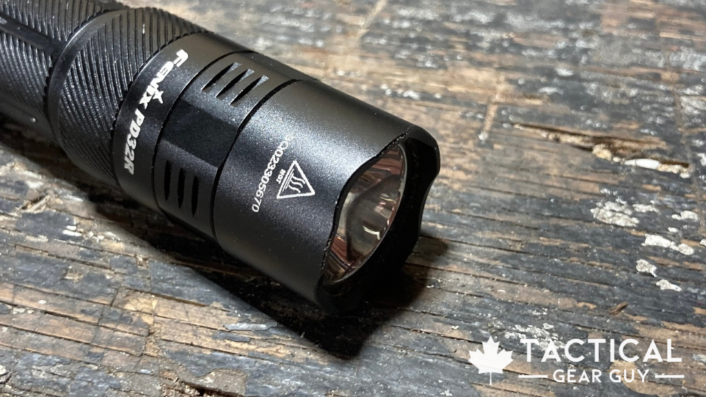 The Fenix PD32R is a very robust tactical flashlight. It’s affordable at around $100, durable, solid, and performs exceptionally well with an output of 1400 lumens and a throw of 344 meters.