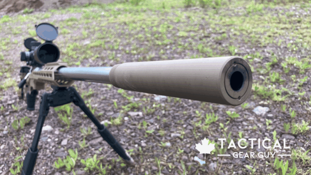 You may be wondering why it looks like I have a suppressor on this setup when I reside in Canada and suppressors are illegal in Canada. That’s because this is a Fake Suppressor made by True North Arms.