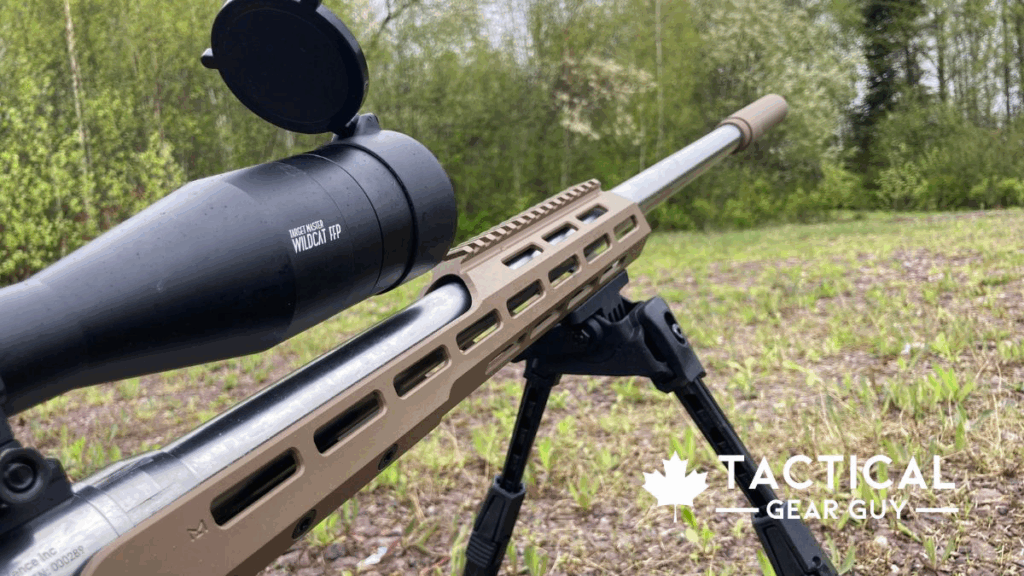 Another Canadian addition to this rifle is the Scorpion Optics 6-24×50 Target Master Wildcat which has an illuminated reticle feature and incredible clarity.